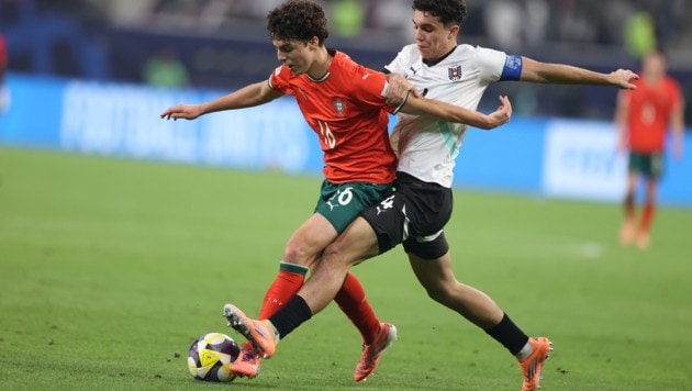 Der aktuelle U17-Europameister Portugal bestimmte im Khalifa International Stadium in der ersten Halbzeit klar das Spielgeschehen und setzte das ÖFB-Team immer wieder mit gefährlichen Offensivaktionen unter Druck. Glück hatte Torhüter Daniel Posch bei einem missglückten Ausflug, dass der anschließende Treffer wegen Foulspiels aberkannt wurde (13.).
